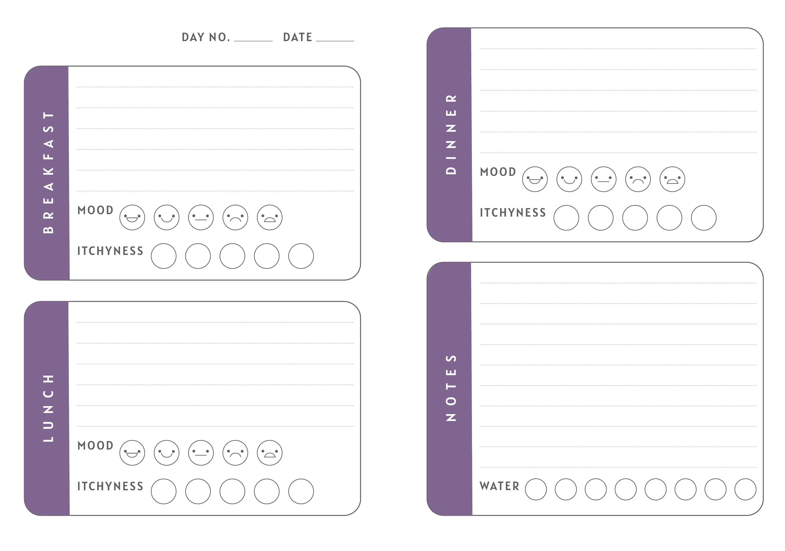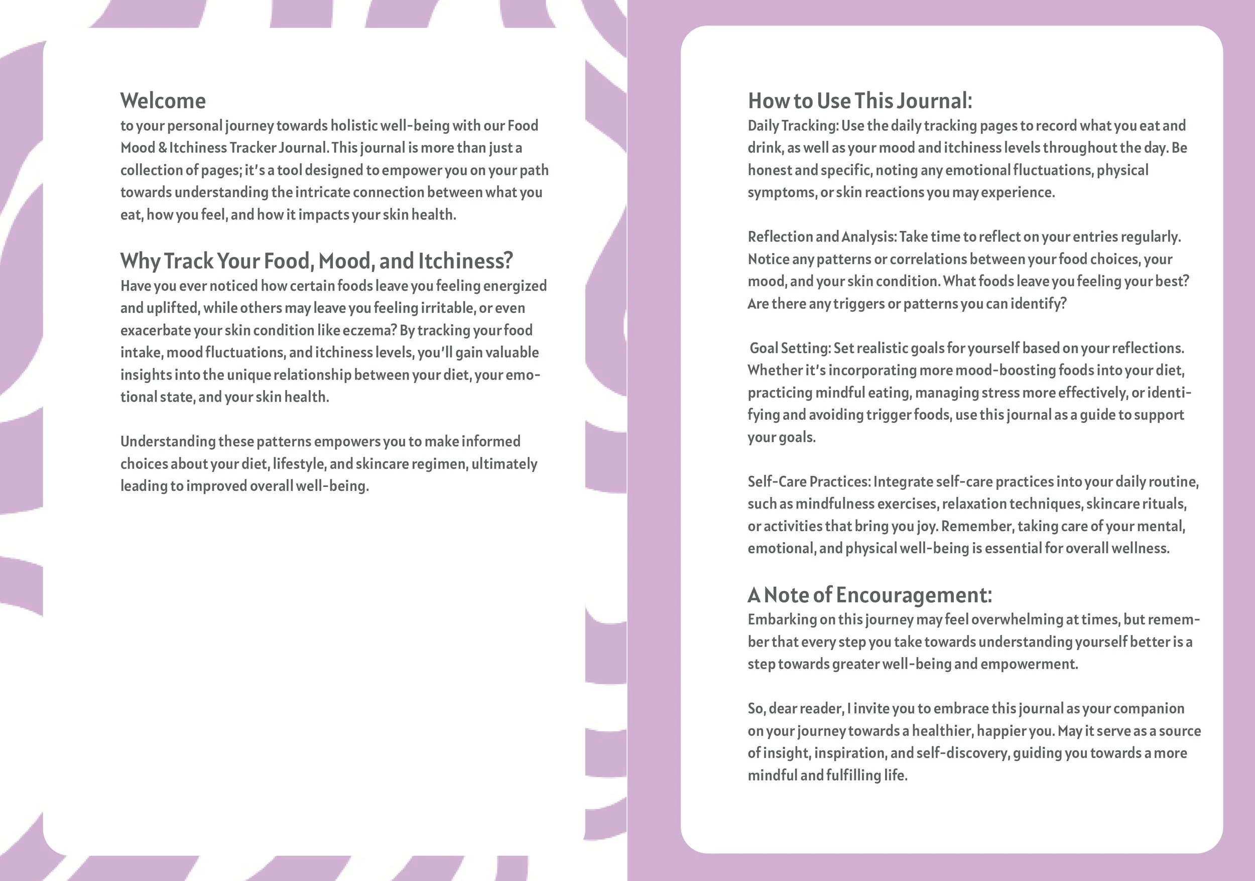 I created this journal to bring mindfulness into that process — a space to track food, mood, and itchiness while reflecting with compassion.