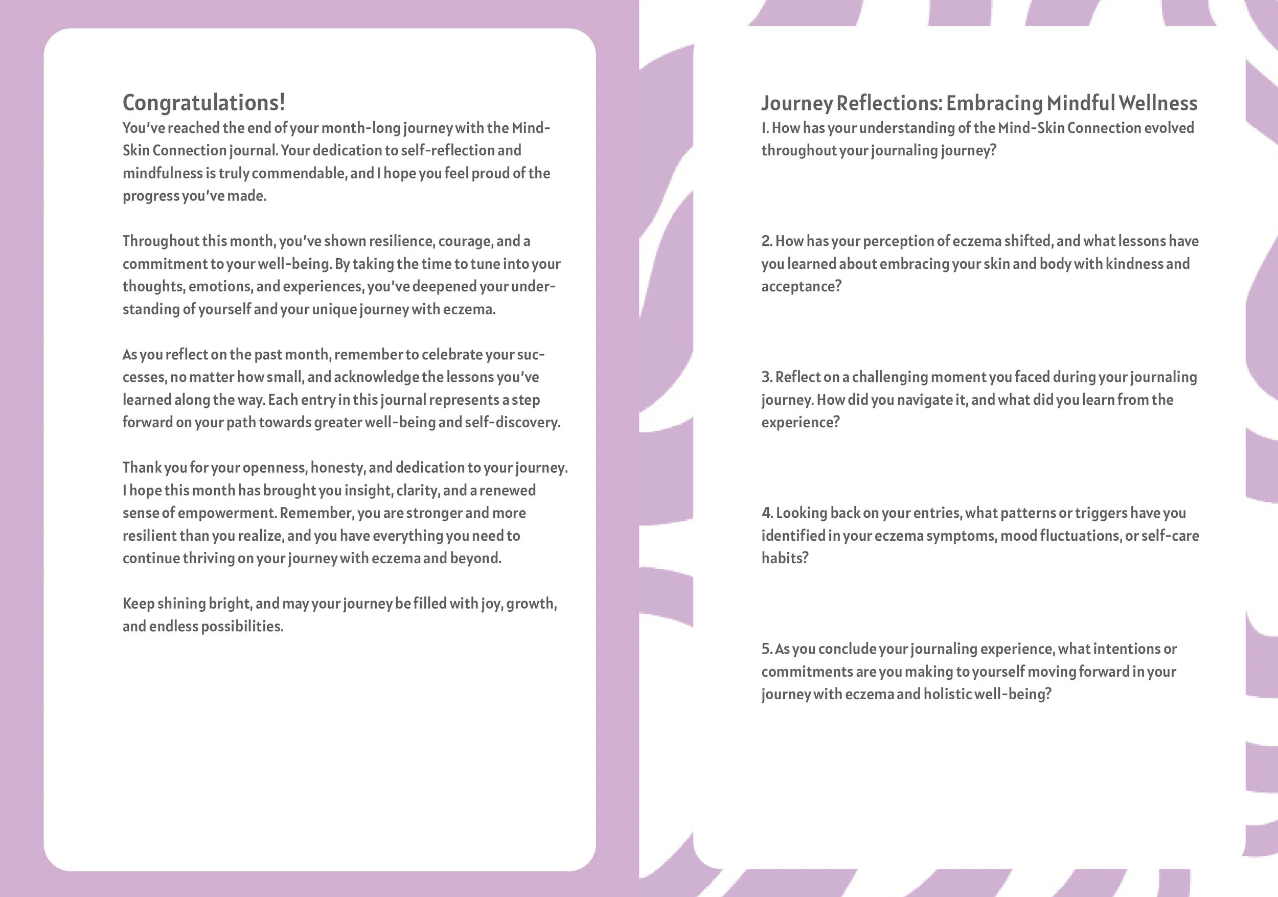 The Food Mood Tracker Journal was inspired by my own journey with eczema — a condition that’s as mental as it is physical. For years, I struggled to understand what triggered my flare-ups and how my emotions played a role.